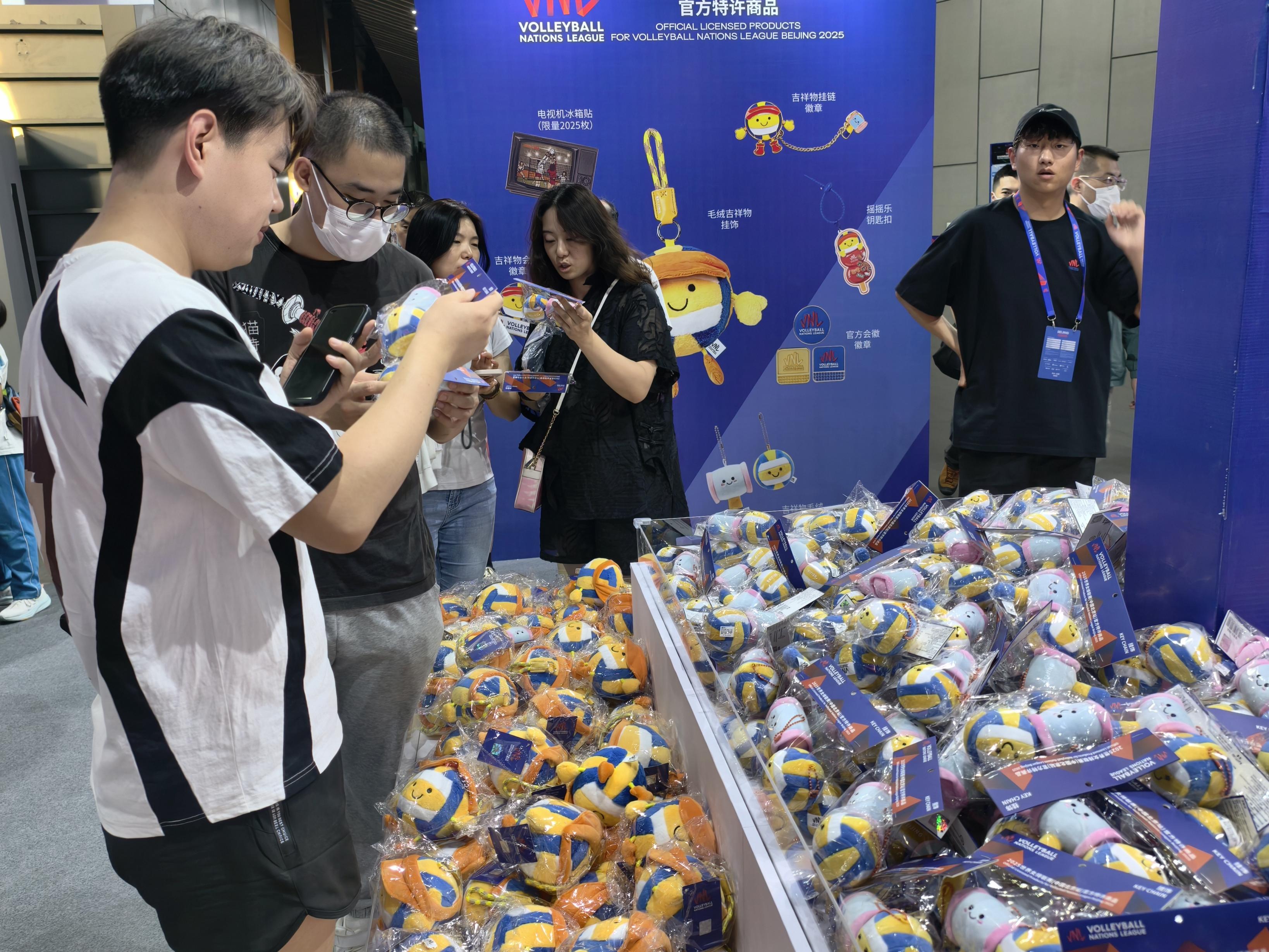 欣赏一场精彩比赛,留下一份美好记忆。本次赛事组委会推出了约20款特许商品,吉祥物“V宝”,造型萌态十足;限量2025枚的复古电视机冰箱贴,还原20世纪大家围坐在电视机前,为中国女排加油助威的盛况;以北京“糖葫芦”为灵感的摇摇乐钥匙扣,富有地域风情、带有VNL(世界女排联赛)字样的徽章亮光闪闪……一系列设计精巧、富有纪念意义的单品广受欢迎,也让本届赛事的精彩“不落幕”,生成对中国女排的“新”记忆。